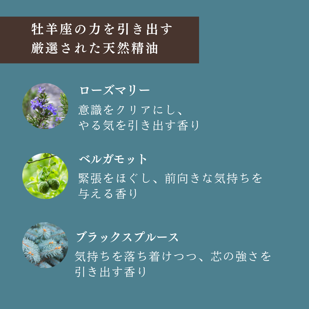 「牡羊座専用アロマスプレー」のブレンドには、