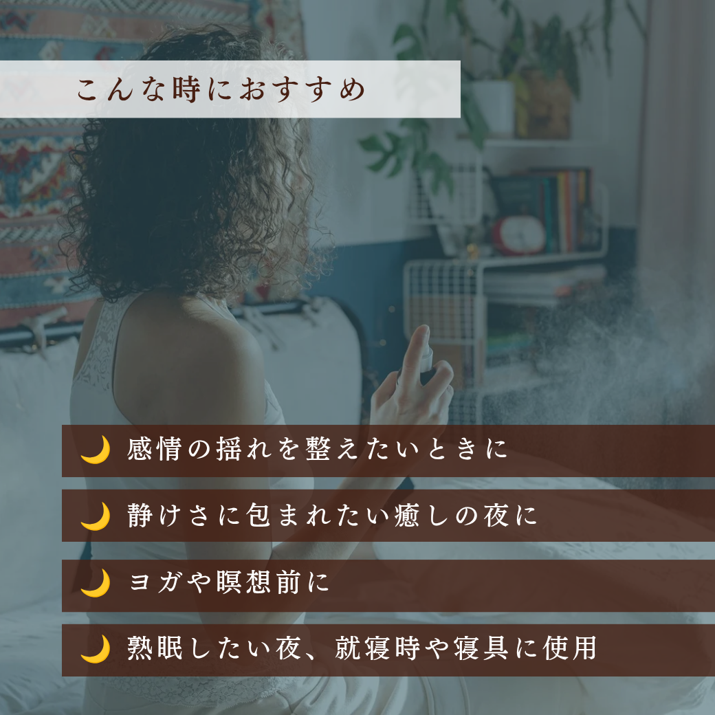 ・本製品は空間用アロマスプレーです。肌への直接使用はお避けください。