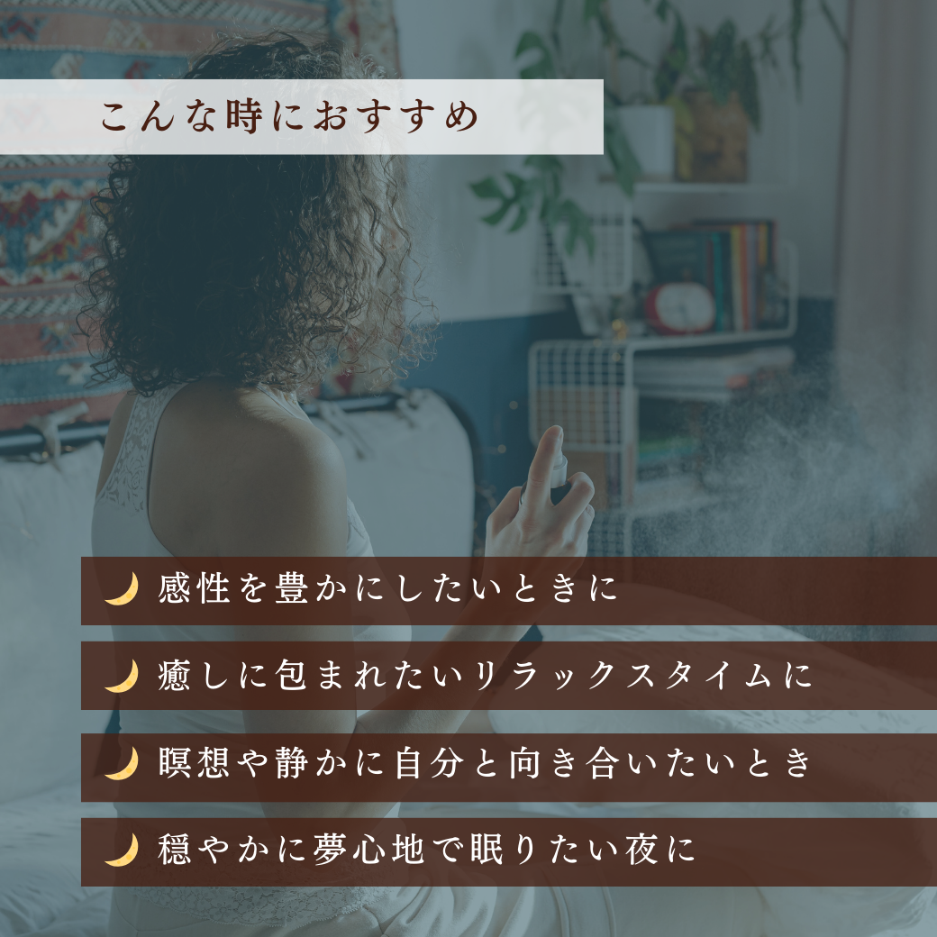 ・本製品は空間用アロマスプレーです。肌への直接使用はお避けください。